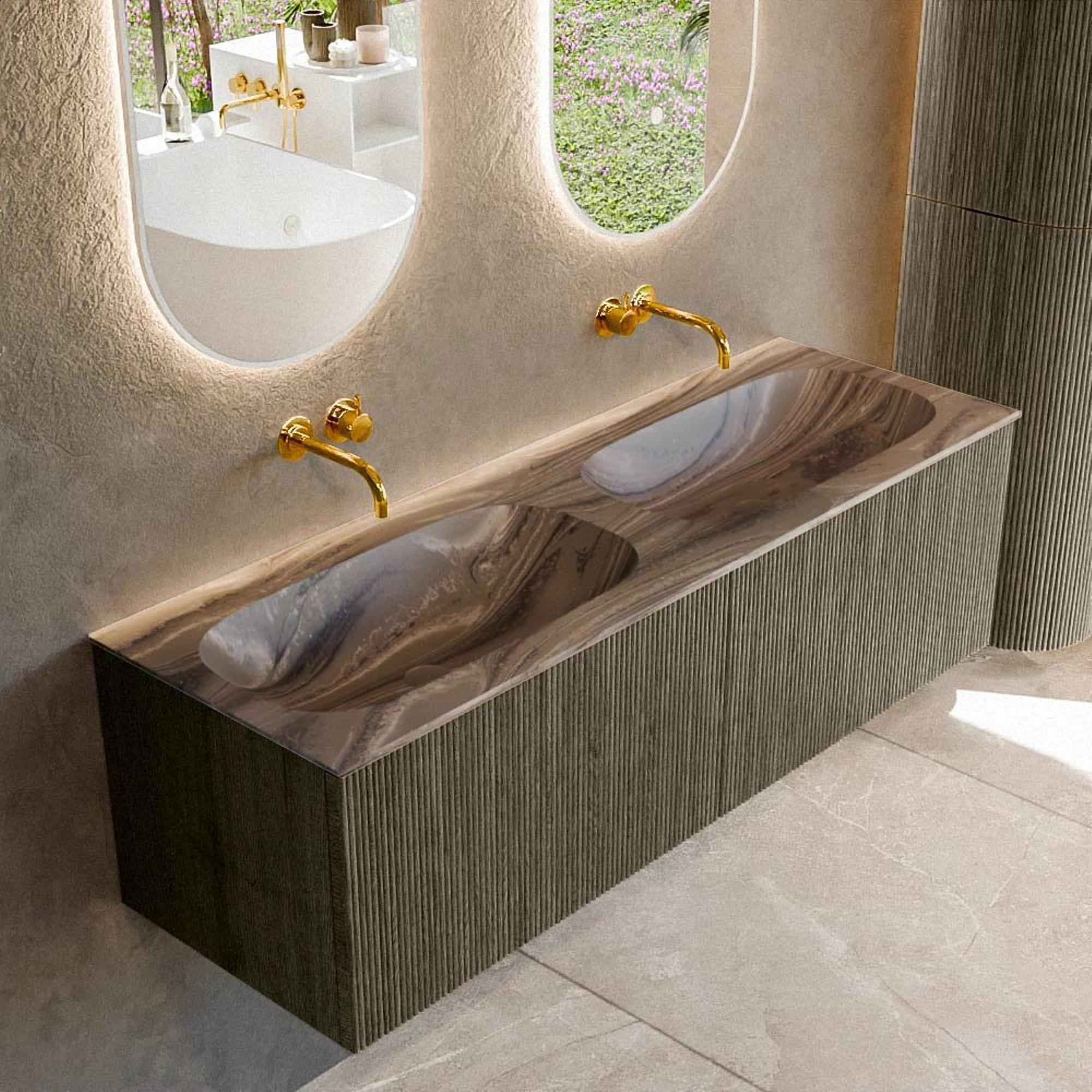 MONDIAZ KURVE-DLUX 140cm badmeubel kleur Shadow met 2 lades en 0 deuren. Wastafel STOR SMALL Dubbel zonder kraangat Sombra.