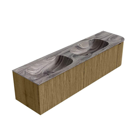 MONDIAZ KURVE-DLUX 175cm badmeubel ronding Rechts kleur Dusk met 2 lades en 1 deur. Wastafel STOR SMALL Dubbel / Links 2 kraangaten Sombra.