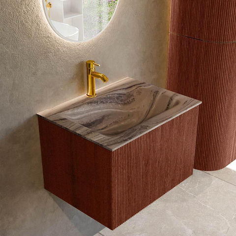MONDIAZ KURVE-DLUX 60cm badmeubel kleur Ruby met 1 lade en 0 deuren. Wastafel CLOUD Midden 1 kraangat Sombra.
