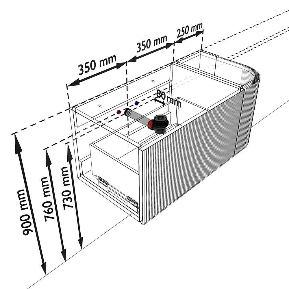 MONDIAZ KURVE-DLUX 95cm badmeubel ronding Rechts kleur Ruby met 1 lade en 1 deur. Wastafel BIG SMALL Links zonder kraangat Sombra.