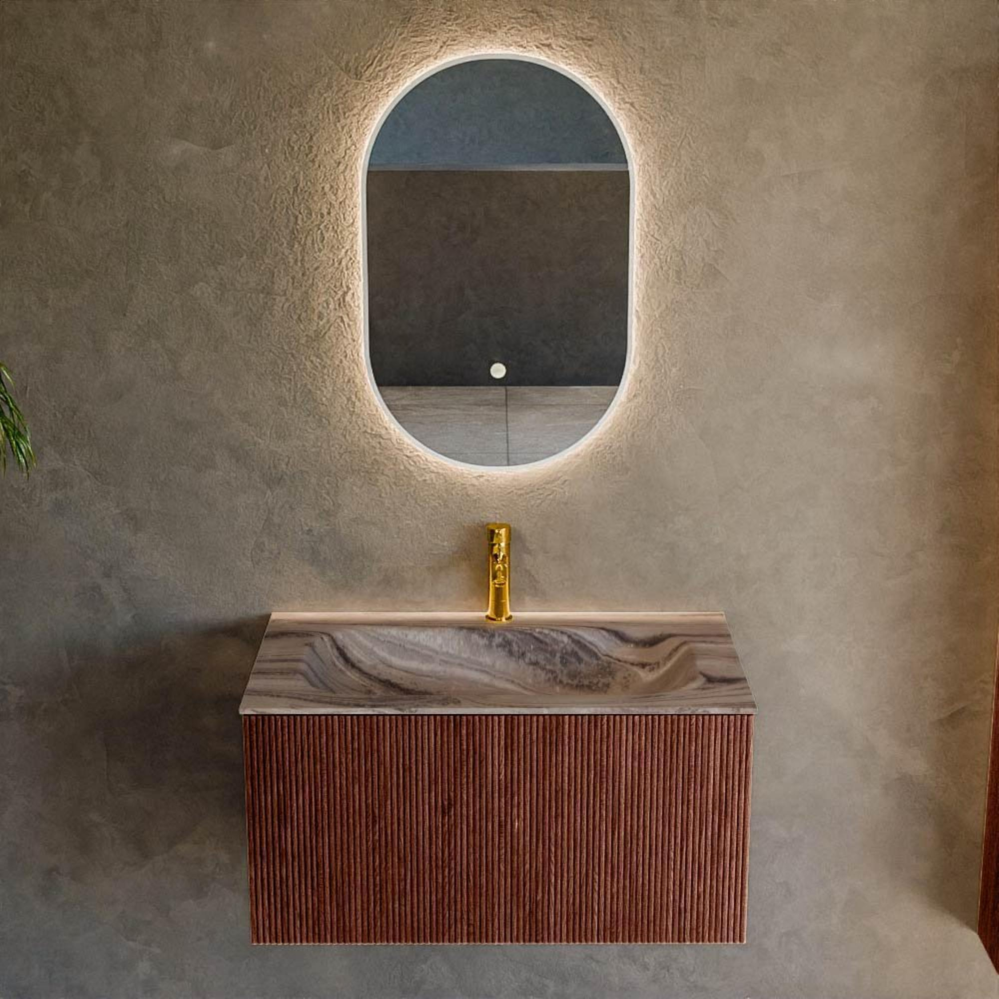 MONDIAZ KURVE-DLUX 80cm badmeubel kleur Ruby met 1 lade en 0 deuren. Wastafel BIG SMALL Midden 1 kraangat Sombra.