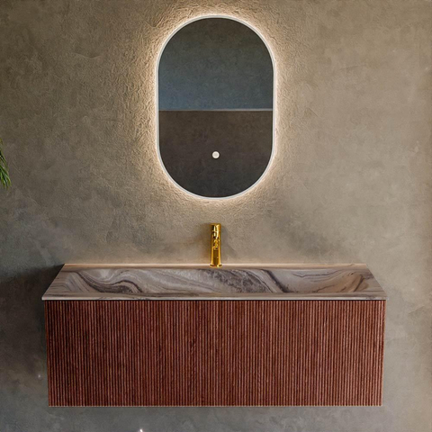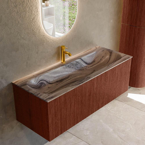 MONDIAZ KURVE-DLUX 120cm badmeubel kleur Ruby met 1 lade en 0 deuren. Wastafel BIG LARGE Midden 1 kraangat Sombra.