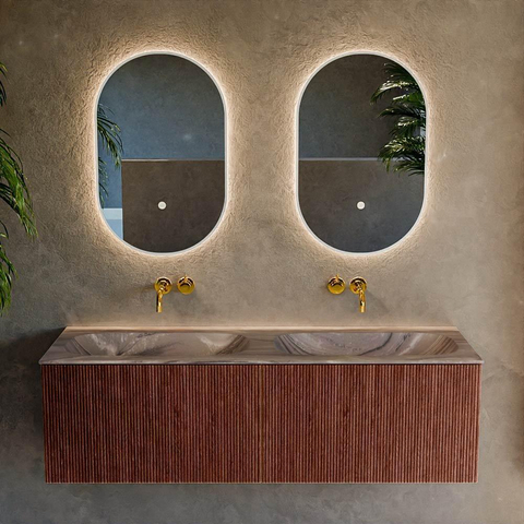 MONDIAZ KURVE-DLUX 140cm badmeubel kleur Ruby met 2 lades en 0 deuren. Wastafel STOR SMALL Dubbel zonder kraangat Sombra.
