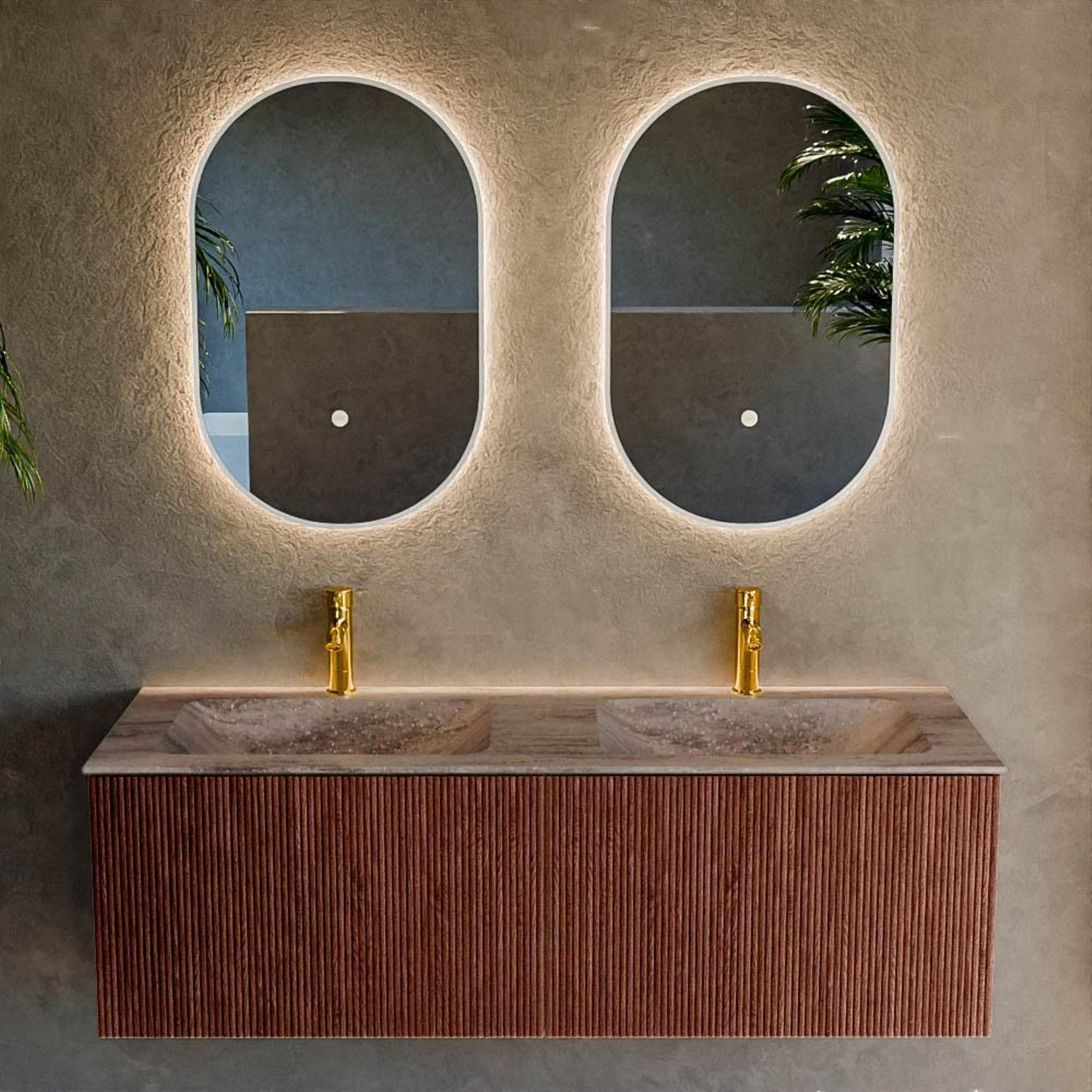 MONDIAZ KURVE-DLUX 130cm badmeubel kleur Ruby met 2 lades en 0 deuren. Wastafel LEAF Dubbel 2 kraangaten Oza.