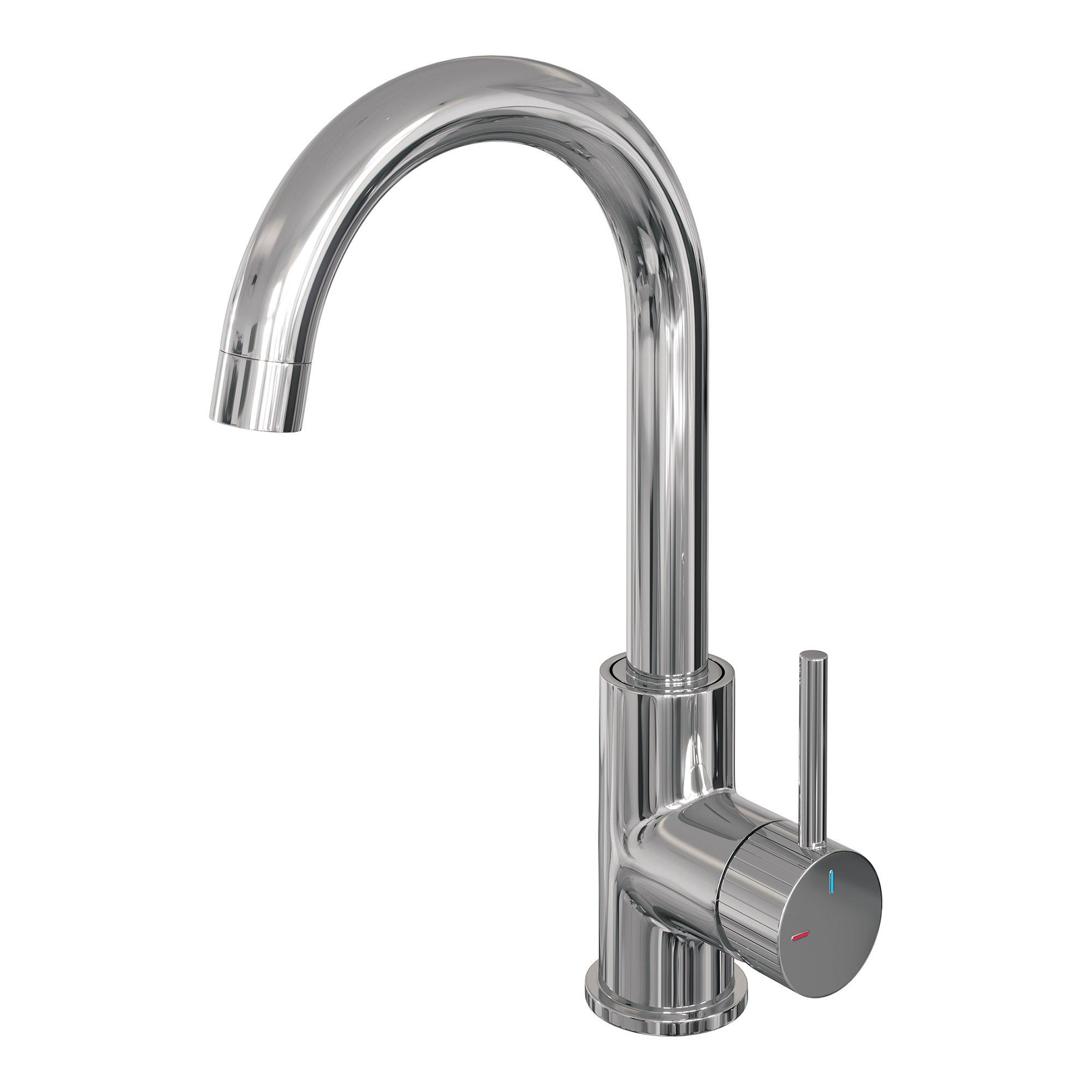 Met deze hoge opbouw wastafelmengkraan geef je jouw badkamer direct een eigentijdse en verfijnde uitstraling. Het strakke, tijdloze design met een hoogglanzende chromen afwerking maakt deze kraan niet alleen een lust voor het oog, maar ook een praktische toevoeging. Dankzij de hoge, gebogen uitloop die draaibaar is, geniet je van extra flexibiliteit bij het gebruik. Of je nu je handen wast, een emmer vult of de wastafel schoonmaakt, de draaibare ronde uitloop maakt het allemaal eenvoudiger en comfortabeler. Het hoogwaardige messing zorgt voor duurzaamheid en een lange levensduur, zodat je jarenlang kunt vertrouwen op de kwaliteit en het gebruiksgemak van deze kraan. Zo transformeer je jouw badkamer in een stijlvolle en functionele ruimte waar je elke dag met plezier gebruik van maakt.