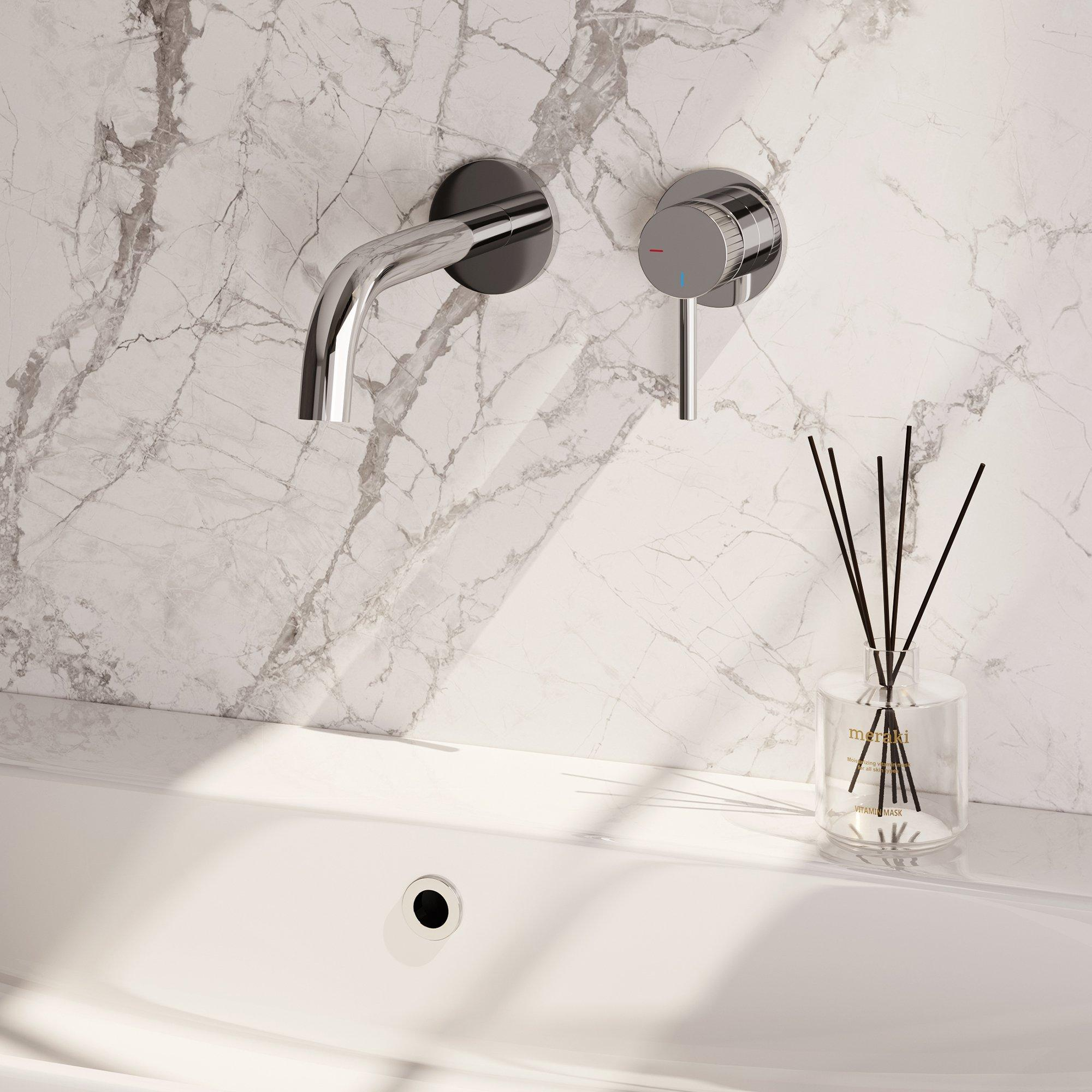 Met deze inbouw wastafelmengkraan geef je jouw badkamer een moderne en verfijnde uitstraling. Het strakke ontwerp met een subtiel gebogen uitloop zorgt voor een elegante touch, terwijl de chromen afwerking een tijdloze glans toevoegt die moeiteloos past bij verschillende badkamerstijlen. Dankzij de inbouwmontage blijft het geheel minimalistisch en ruimtelijk, waardoor je wastafel echt tot zijn recht komt. Deze kraan is niet alleen een lust voor het oog, maar ook uiterst praktisch: hij is speciaal ontworpen voor wastafels zonder kraangat en wordt compleet geleverd met rozetten en inbouwdeel, zodat je installatie soepel verloopt. Zo geniet je van een stijlvolle en functionele oplossing die jouw badkamer transformeert tot een plek waar comfort en design samenkomen.