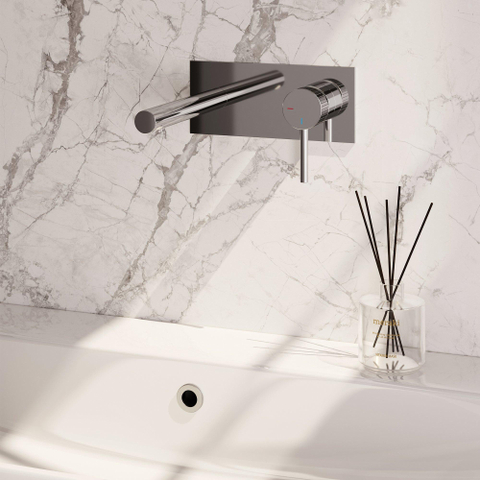 De inbouwmontage zorgt voor een opgeruimd en strak aanzicht, waarbij alleen de essentiële onderdelen zichtbaar zijn. Met een uitloop van 19 cm heb je voldoende ruimte om comfortabel te wassen, zonder dat water spettert. De hendelbediening maakt het regelen van de watertemperatuur en -stroom eenvoudig en precies, zodat je altijd de perfecte waterstraal hebt. Bovendien is deze kraan speciaal ontworpen voor wastafels zonder kraangat, wat het installeren flexibel en probleemloos maakt. Zo geniet je van een kraan die niet alleen mooi is, maar ook perfect aansluit op jouw dagelijkse gebruik.