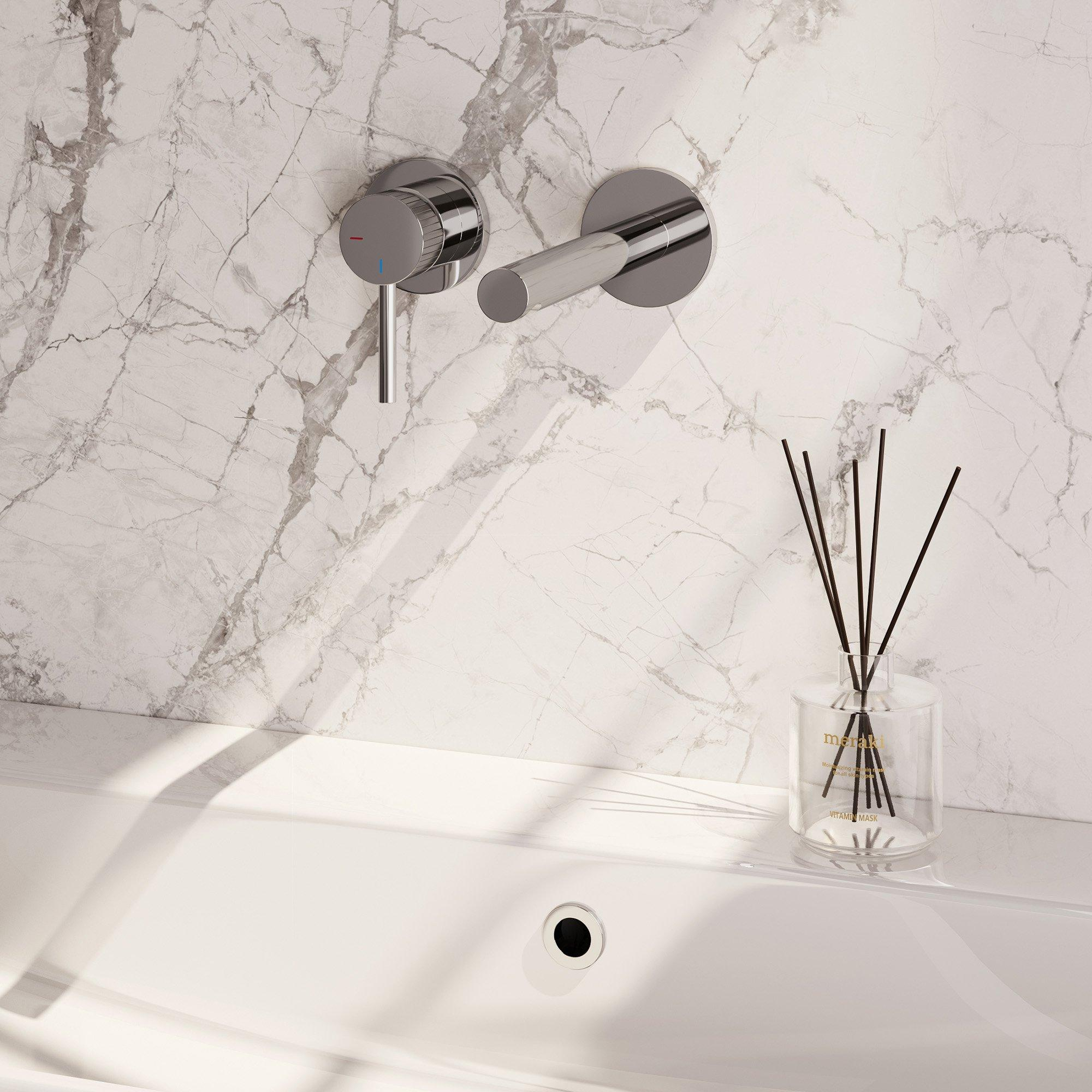 De strakke lijnen en de hoogglans chromen afwerking maken deze kraan tot een echte blikvanger in je badkamer. Het minimalistische ontwerp past perfect bij moderne en eigentijdse interieurs, maar voegt ook een frisse touch toe aan klassiekere stijlen. Door de rechte uitloop en subtiele rozetten oogt het geheel rustig en verfijnd. Zo creëer je een badkamer die niet alleen functioneel is, maar ook een plek waar je met plezier tijd doorbrengt. De stijlvolle uitstraling zorgt ervoor dat deze kraan moeiteloos combineert met andere badkameraccessoires en -meubels, waardoor je een harmonieus geheel vormt.