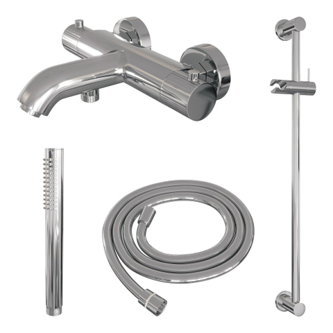 De hoogglans chromen afwerking geeft deze set een tijdloze en luxe uitstraling die in elke badkamer tot zijn recht komt. Het strakke design van de kraan en accessoires zorgt voor een moderne en verzorgde look, die moeiteloos aansluit bij diverse interieurstijlen. Door de glanzende finish reflecteert het licht subtiel, wat de ruimte optisch vergroot en een frisse sfeer creëert. Met deze baddouche thermostaatkraan voeg je niet alleen functionaliteit toe, maar ook een vleugje elegantie die jouw badkamer net dat beetje extra geeft.