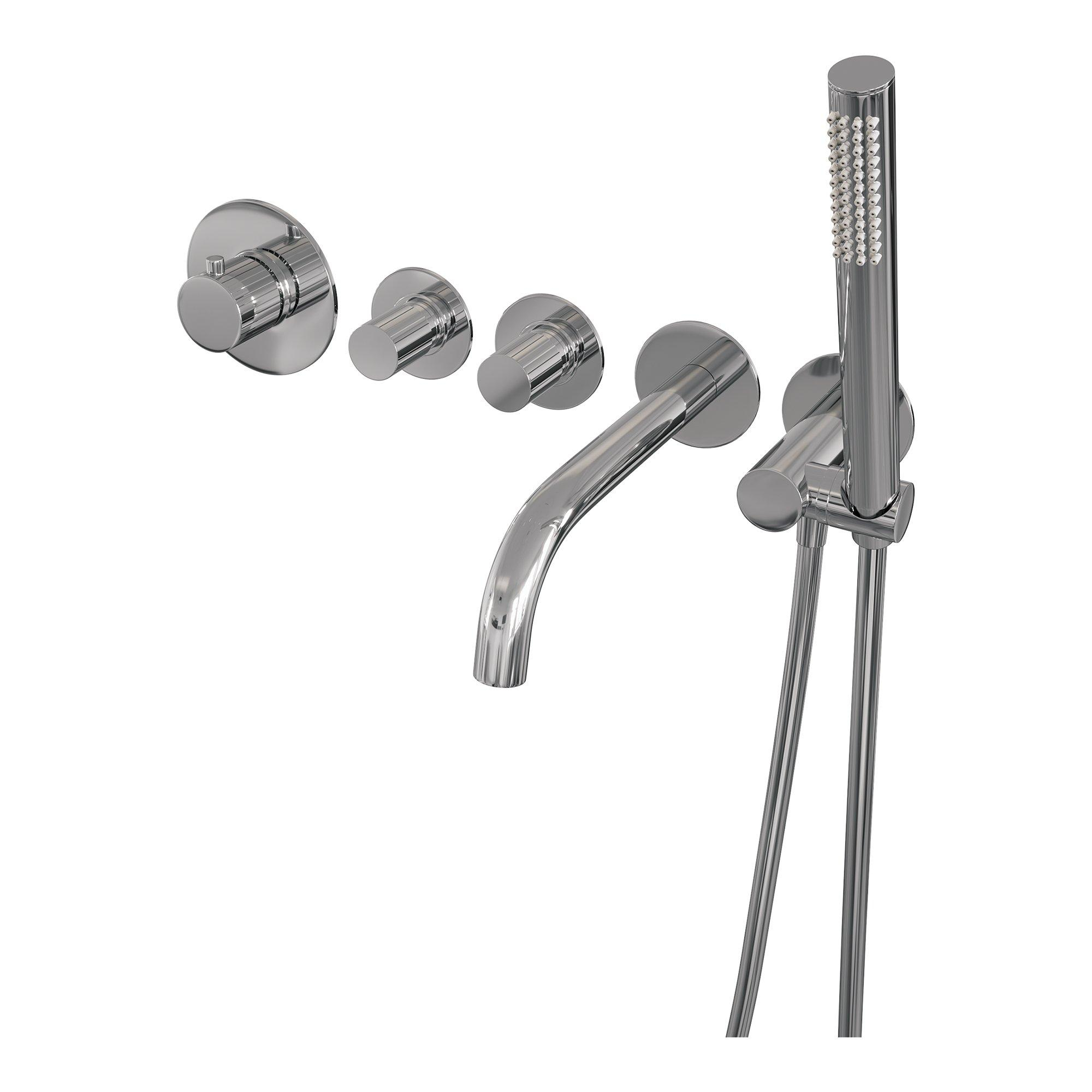 BRAUER Stripe Thermostatische Badkraan - SET 01 - inbouw - uitloop - staaf handdouche - doucheslang - wandaansluitbocht - chroom