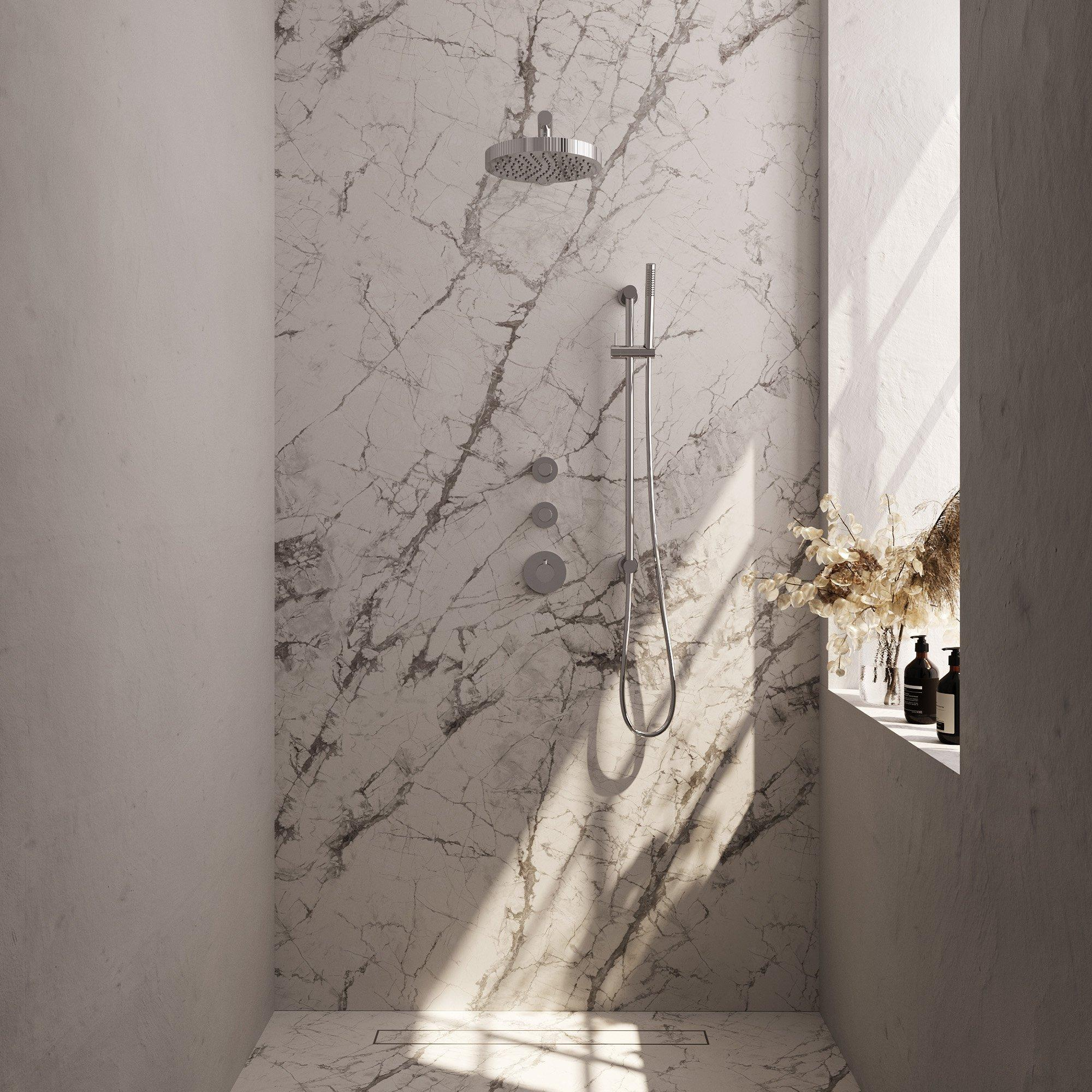 De minimalistische en glanzende chromen afwerking van deze regendouche straalt pure elegantie uit. Het ontwerp is strak en modern, waardoor het een prachtige toevoeging is aan elke badkamer. Door de tijdloze look past deze set zowel in een klassiek als een eigentijds interieur. Met deze regendouche maak je een statement zonder te overdrijven, wat bijdraagt aan een serene en verzorgde sfeer. Zo geniet je niet alleen van functionaliteit, maar ook van een visueel hoogstandje dat jouw badkamer naar een hoger niveau tilt.