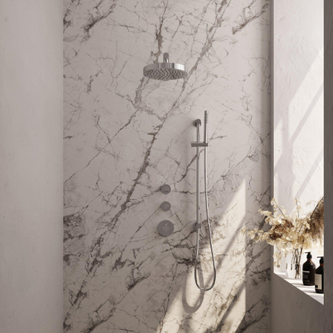 - Strakke rechte muurarm voor optimale plaatsing van de hoofddouche