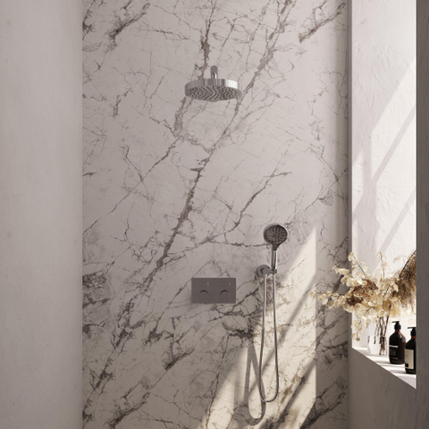 Gemaakt van hoogwaardig messing met een chroomlaag, staat deze regendouche garant voor jarenlang betrouwbaar gebruik. Messing is van nature bestand tegen corrosie en slijtage, waardoor je verzekerd bent van een product dat zijn kwaliteit behoudt, zelfs bij dagelijks intensief gebruik. De thermostatische kraan zorgt bovendien voor een stabiele waterdruk en temperatuur, wat niet alleen comfortabel is, maar ook waterbesparing stimuleert. Zo investeer je in een duurzame oplossing die goed is voor jou én het milieu, zonder in te leveren op luxe en gebruiksgemak.