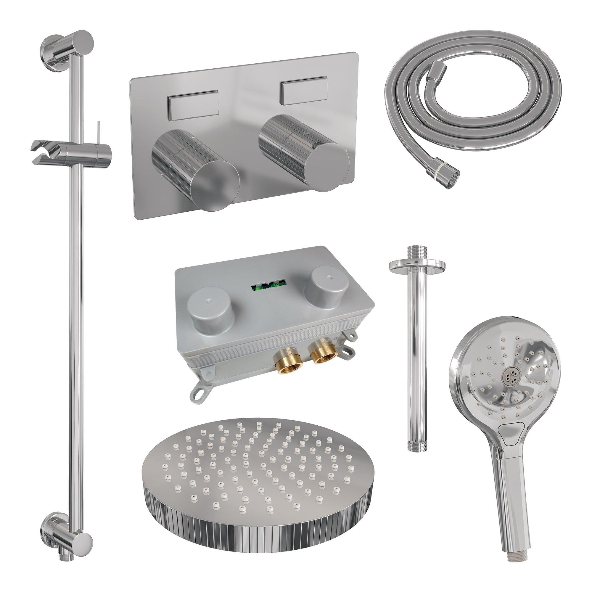 Gemaakt van hoogwaardig messing, staat deze regendouche garant voor jarenlang betrouwbaar gebruik. Messing is niet alleen sterk, maar ook bestand tegen corrosie en verkleuring, waardoor de glans van het chroom lang behouden blijft. De thermostatische kraan zorgt voor een constante watertemperatuur, wat niet alleen comfortabel is, maar ook veilig. Zo hoef je je geen zorgen te maken over plotselinge temperatuurschommelingen tijdens het douchen. Deze duurzame kwaliteit betekent dat je jarenlang zorgeloos kunt genieten van je douche.