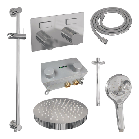 BRAUER Stripe Thermostatische Inbouw Regendouche - drukknoppen - SET 36 - 25cm douchekop - plafondarm - 3-standen handdouche - doucheslang - geïntegreerde glijstang - chroom
