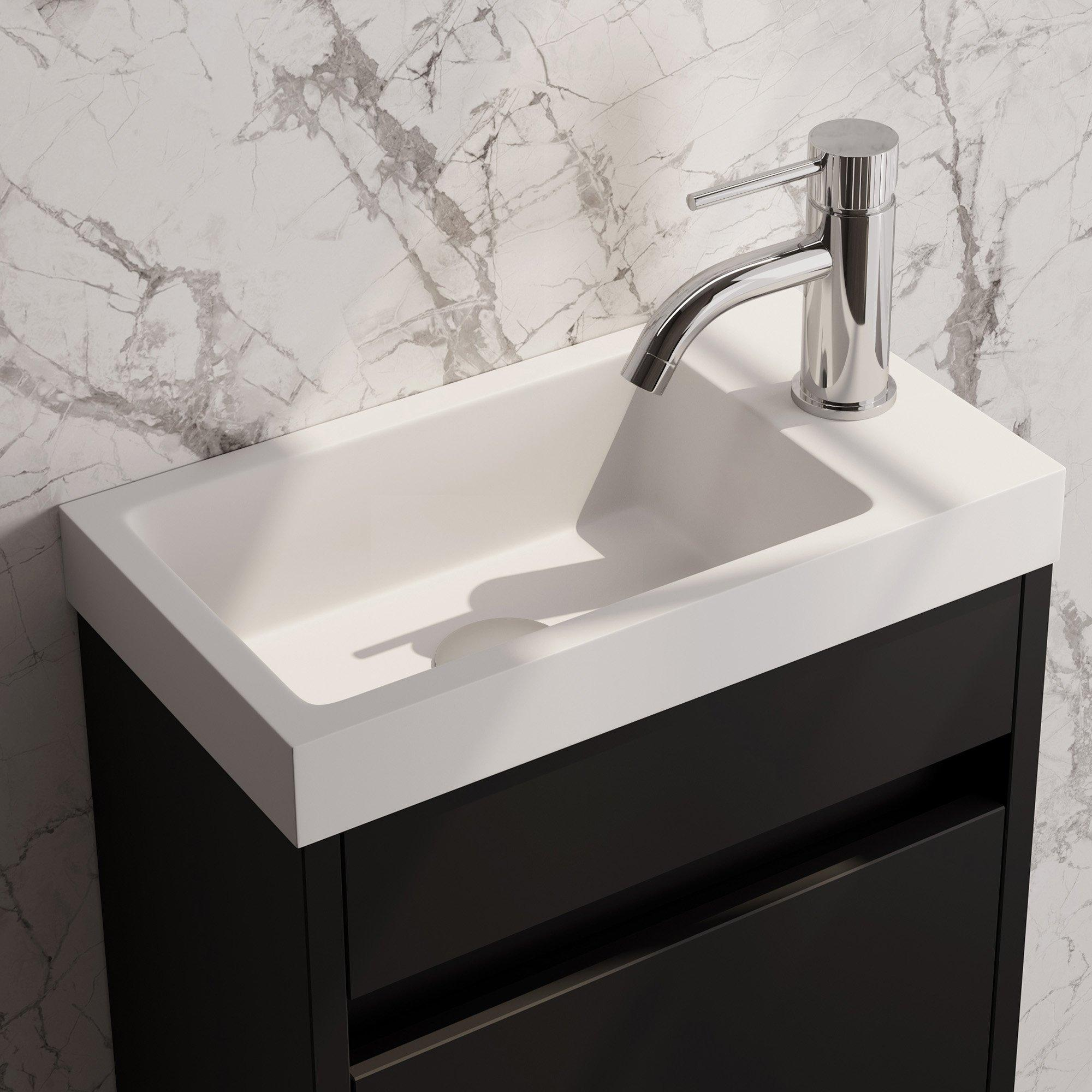 - Lage uitloop, ideaal voor fonteintjes en compacte wastafels