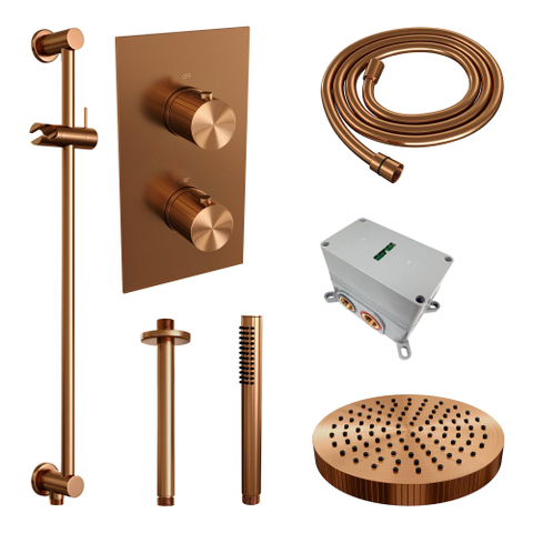 BRAUER Stripe Thermostatische Inbouw Regendouche - 3-weg - rechthoekig - SET 21 - 25cm douchekop - plafondarm - staaf handdouche - doucheslang - geïntegreerde glijstang - koper geborsteld PVD