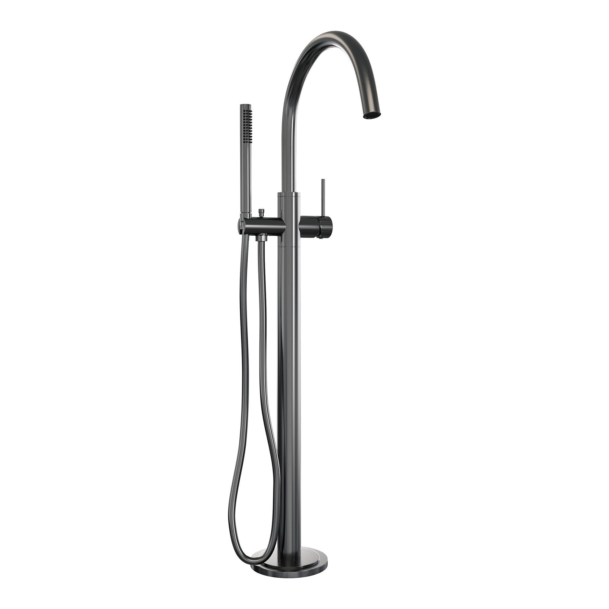 Met deze vrijstaande badmengkraan geef je jouw badkamer een indrukwekkende upgrade. Het strakke ontwerp in een stijlvolle gunmetal kleur met een geborstelde PVD-afwerking zorgt voor een moderne en luxe uitstraling die direct in het oog springt. Dankzij de hoogwaardige materialen en de doordachte vormgeving geniet je niet alleen van een prachtig design, maar ook van optimaal gebruiksgemak. De bijgeleverde staaf handdouche en doucheslang maken het badritueel compleet en bieden je de flexibiliteit om je badervaring precies naar wens in te richten. Zo transformeer je jouw badkamer moeiteloos in een oase van comfort en elegantie waar je elke dag opnieuw van kunt genieten.
