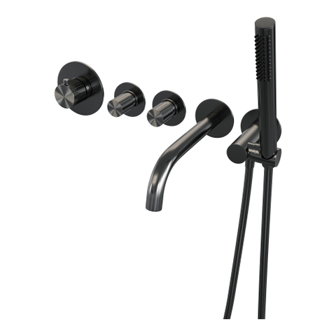 BRAUER Stripe Thermostatische Badkraan - SET 01 - inbouw - uitloop - staaf handdouche - doucheslang - wandaansluitbocht - gunmetal geborsteld PVD