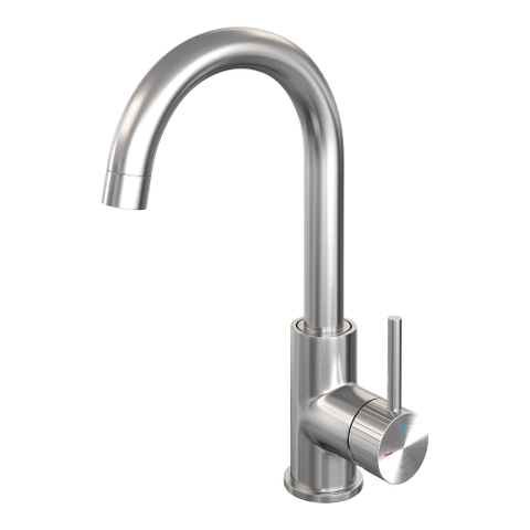 Met deze hoge opbouw wastafelmengkraan geef je jouw badkamer een stijlvolle en functionele upgrade. De geborstelde RVS-kleurige afwerking zorgt voor een moderne en tijdloze uitstraling die moeiteloos aansluit bij diverse badkamerstijlen. Dankzij het hoge, gebogen ontwerp met draaibare ronde uitloop geniet je van extra bewegingsvrijheid, waardoor wassen en schoonmaken nog comfortabeler wordt. Deze kraan combineert elegantie met gebruiksgemak en biedt een duurzame oplossing die jarenlang meegaat. Zo transformeer je jouw wastafel tot een plek waar design en functionaliteit samenkomen, en waar je elke dag met plezier je handen wast of je gezicht verfrist.