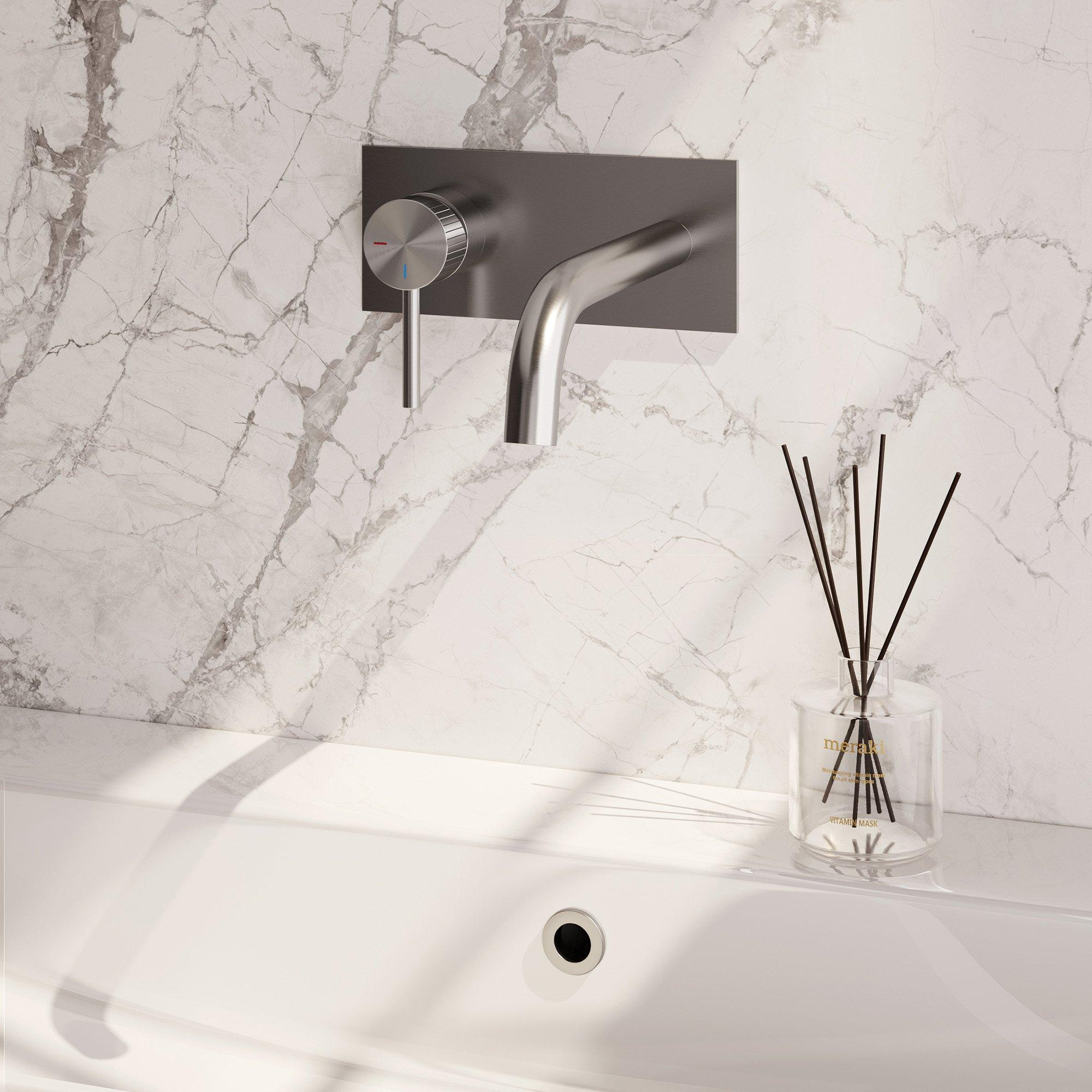 Met deze inbouw wastafelmengkraan geef je jouw badkamer een verfijnde en moderne uitstraling. Het strakke ontwerp met een gebogen uitloop en subtiele afdekplaat zorgt voor een tijdloze elegantie die moeiteloos past in diverse interieurstijlen. Dankzij de hoogwaardige materialen en de geborstelde PVD-afwerking in RVS-kleur geniet je niet alleen van een prachtige look, maar ook van duurzaamheid die lang meegaat. De kraan is ontworpen om naadloos in de wand te worden ingebouwd, waardoor je wastafel een opgeruimde en stijlvolle uitstraling krijgt. Bovendien zorgt de koude startfunctie ervoor dat je energie bespaart door bij het openen vanuit de neutrale stand alleen koud water te gebruiken. Zo combineer je comfort met milieubewustzijn in één prachtig product.