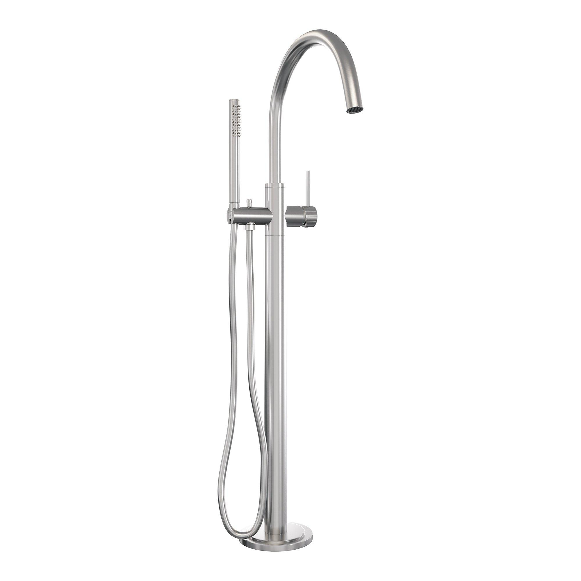 - Vrijstaande badmengkraan met modern design in RVS-kleurig geborsteld PVD