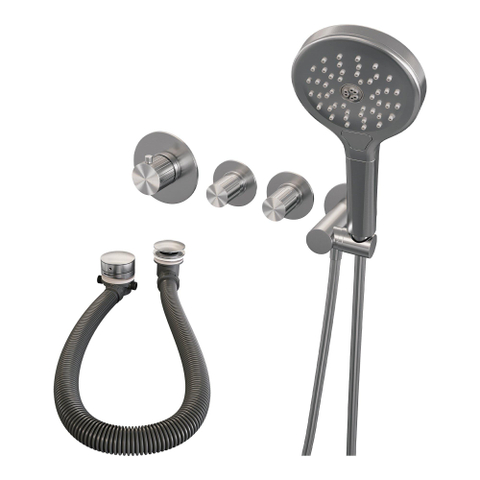 Transformeer jouw badkamer met deze hoogwaardige inbouwkraan die niet alleen functioneel is, maar ook een stijlvolle toevoeging vormt aan je interieur. Dankzij het strakke, geborstelde RVS-design krijgt je badkamer een moderne en tijdloze uitstraling. Deze set biedt je alle comfort die je nodig hebt: een badvulcombinatie, een handdouche met drie standen en een handige doucheslang. Zo geniet je moeiteloos van een ontspannen badmoment of een verfrissende douche. Het slimme ontwerp zorgt voor een naadloze integratie in je muur, waardoor je badkamer er strak en opgeruimd uitziet. Bovendien garandeert de thermostatische bediening een constante watertemperatuur, zodat je altijd veilig en comfortabel kunt douchen zonder plotselinge temperatuurwisselingen. Met deze combinatie haal je niet alleen kwaliteit in huis, maar ook een betrouwbare partner voor jarenlang zorgeloos gebruik.