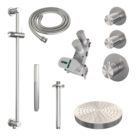 BRAUER Stripe Thermostatische Inbouw Regendouche - SET 09 - 25cm douchekop - plafondarm - staaf handdouche - doucheslang - geïntegreerde glijstang - RVS-kleurig geborsteld PVD
