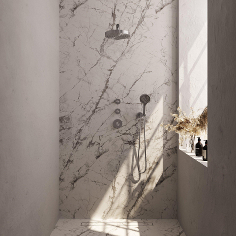 Stap onder deze prachtige regendouche en ervaar hoe jouw badkamer transformeert in een luxe wellnessruimte. Deze inbouwdouche combineert strak design met slimme functionaliteit, waardoor je elke dag kunt genieten van een verfrissende en ontspannende douchebeurt. De royale douchekop zorgt voor een brede, zachte waterstraal die je het gevoel geeft alsof je onder een zomerse regenbui staat. Dankzij de thermostatische regeling geniet je altijd van de perfecte watertemperatuur, zonder schommelingen. De combinatie van een stijlvolle afwerking en doordachte details maakt dit product niet alleen een praktische toevoeging, maar ook een echte blikvanger in je badkamer. Zo geef je jouw badkamer een moderne en hoogwaardige uitstraling die jarenlang meegaat.