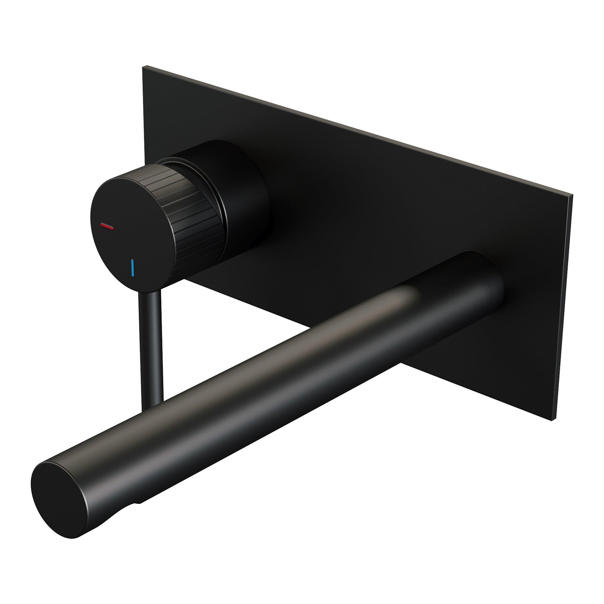 BRAUER Stripe Inbouw Wastafelmengkraan - rechte uitloop en afdekplaat - model A2 - mat zwart
