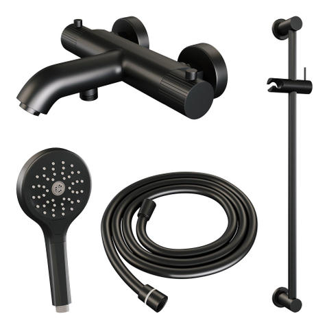 Transformeer je dagelijkse douchebeleving met deze hoogwaardige baddouche thermostaatkraan die niet alleen functioneel is, maar ook een stijlvolle toevoeging aan je badkamer. Dankzij het strakke, matte zwarte design geef je jouw badkamer een moderne en luxe uitstraling die tijdloos is. De combinatie van een glijstang, een 3-standen handdouche en een flexibele doucheslang zorgt voor optimaal gebruiksgemak en comfort. Of je nu snel wilt douchen of juist uitgebreid wilt ontspannen, deze set biedt je alle mogelijkheden. Bovendien zorgt de thermostatische bediening ervoor dat je altijd geniet van de perfecte watertemperatuur, zonder schommelingen. Zo wordt iedere douchebeurt een moment van rust en verwennerij in je eigen badkamer.