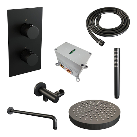 Stel je voor: een badkamer die niet alleen functioneel is, maar ook een oase van rust en stijl. Met deze hoogwaardige inbouw regendouche transformeer je jouw dagelijkse douchebeurt in een luxe ervaring. De combinatie van een royale, rechthoekige douchekop en een elegante handdouche biedt je alle vrijheid om te genieten zoals jij dat wilt. Dankzij de slimme thermostatische regeling geniet je altijd van de perfecte watertemperatuur, zonder schommelingen. Het matzwarte design voegt een moderne, tijdloze uitstraling toe die moeiteloos past in elke badkamerstijl. Dit product is niet zomaar een douche; het is een statement van kwaliteit en comfort, waarmee je jouw badkamer een ware upgrade geeft. De meegeleverde accessoires maken de installatie compleet en zorgen voor een naadloze afwerking, zodat je snel kunt genieten van jouw nieuwe regendouche.