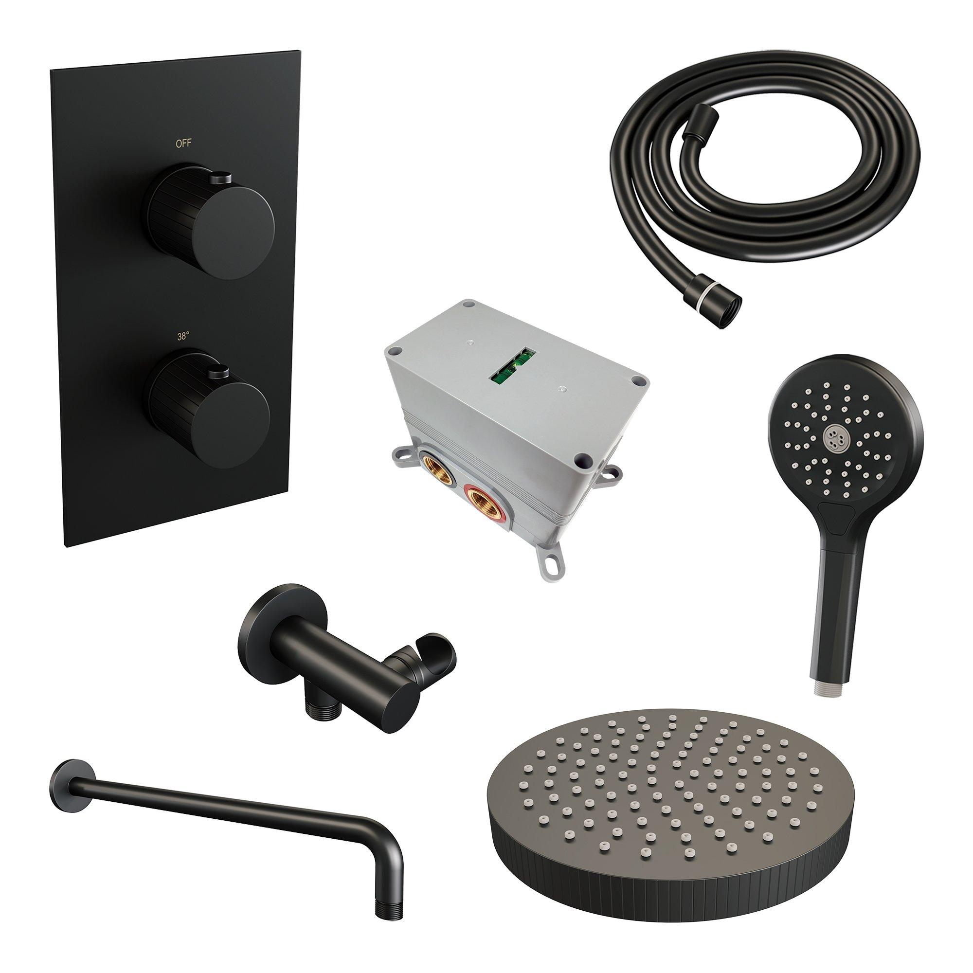 BRAUER Stripe Thermostatische Inbouw Regendouche - 3-weg - rechthoekig - SET 17 - 25cm douchekop - gebogen muurarm - 3-standen handdouche - doucheslang - wandaansluitbocht - mat zwart
