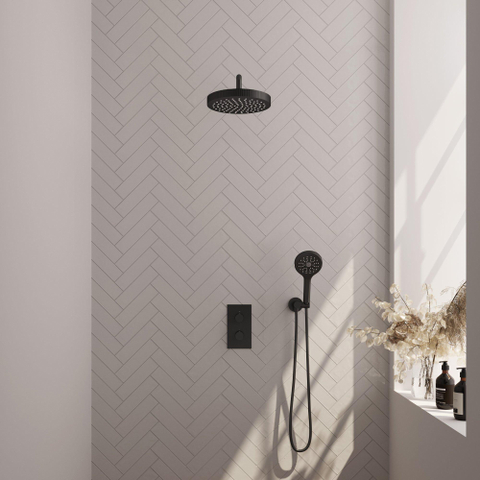 Transformeer jouw badkamer met deze hoogwaardige inbouw regendouche die niet alleen prachtig oogt, maar ook uitermate praktisch is. Dankzij het strakke, matte zwarte design krijgt je badkamer een moderne en tijdloze uitstraling die moeiteloos aansluit bij diverse interieurstijlen. De combinatie van een royale rechthoekige douchekop en een veelzijdige handdouche biedt je een luxe douche-ervaring, waarbij comfort en functionaliteit centraal staan. Met deze set geniet je van een perfecte balans tussen stijl en gebruiksgemak, waardoor elke douchebeurt een moment van ontspanning en verwennerij wordt. Bovendien zorgt de thermostatische bediening ervoor dat je altijd de gewenste watertemperatuur behoudt, wat bijdraagt aan een veilige en comfortabele douchebeleving voor het hele gezin.