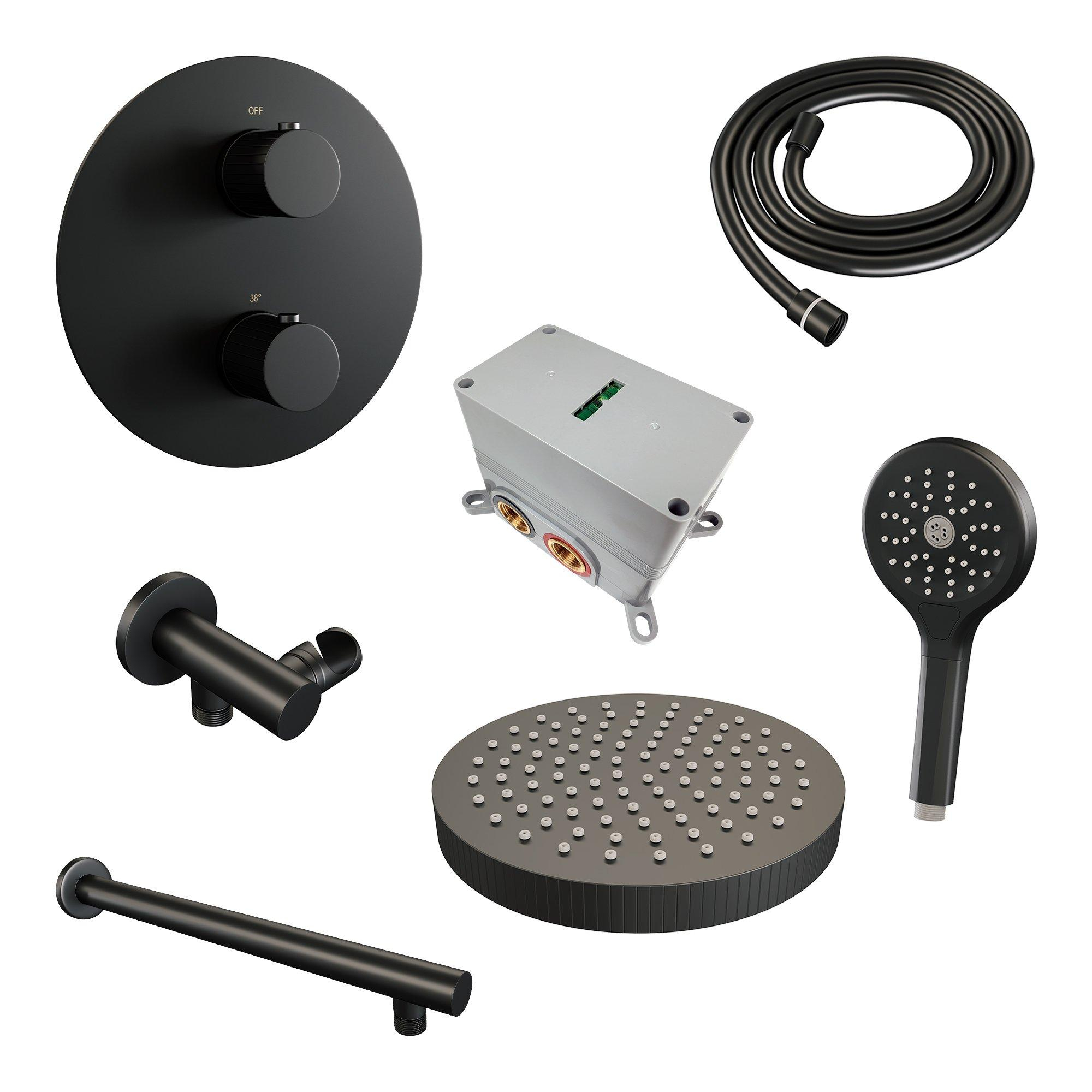 BRAUER Stripe Thermostatische Inbouw Regendouche - 3-weg - rond - SET 40 - 25cm douchekop - rechte muurarm - 3-standen handdouche - doucheslang - wandaansluitbocht - mat zwart