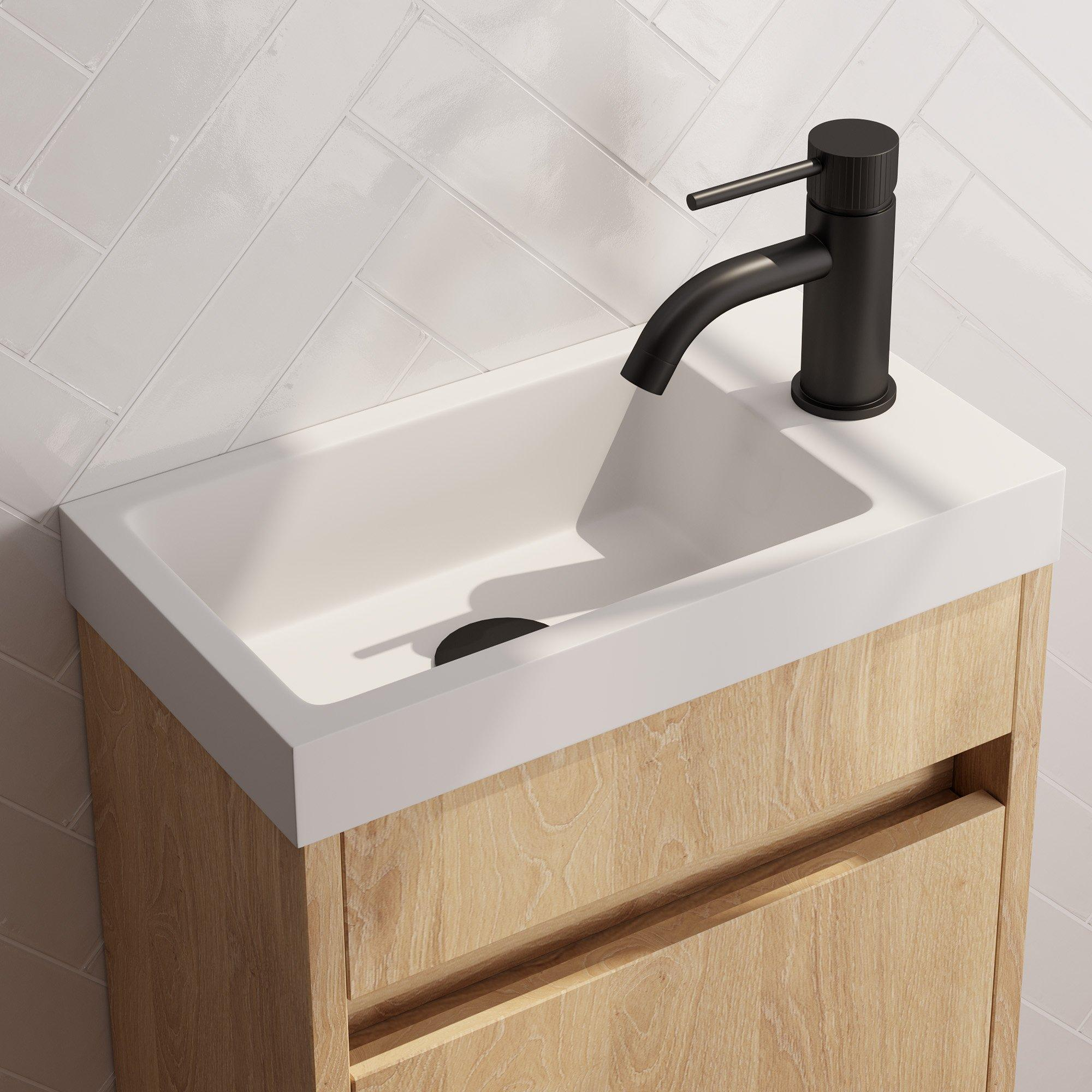 - Compact ontwerp met lage uitloop, ideaal voor kleine wastafels
