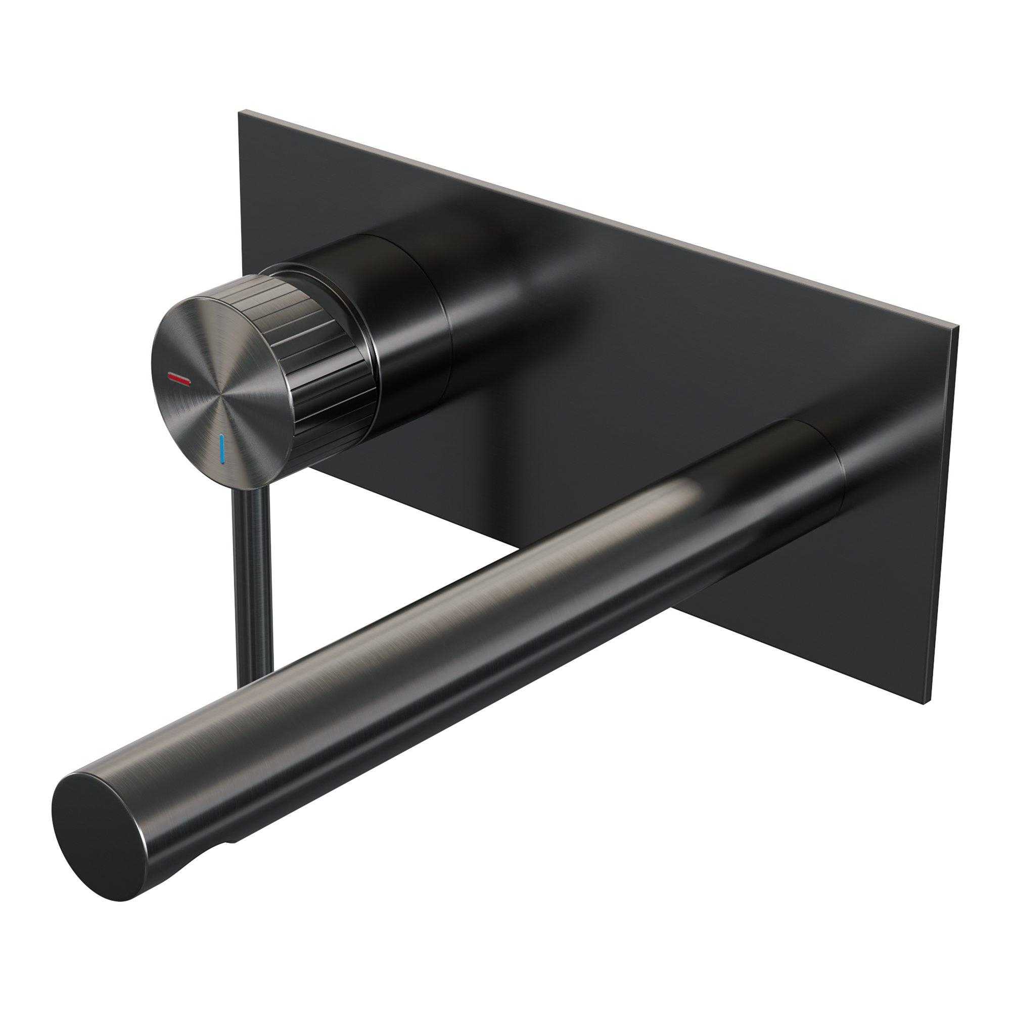 BRAUER Stripe Inbouw Wastafelmengkraan - rechte uitloop en afdekplaat - model A2 - gunmetal geborsteld PVD