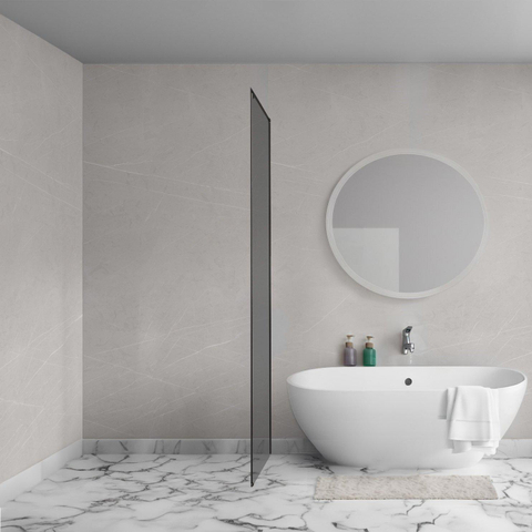De combinatie van rookglas en matzwarte profielen zorgt voor een tijdloze en chique uitstraling. Dit design past perfect in moderne badkamers waar je een balans zoekt tussen minimalisme en karakter. Het rookglas filtert het licht op een zachte manier, waardoor de ruimte een warme en uitnodigende sfeer krijgt. Tegelijkertijd zorgt het matzwarte beslag voor een krachtig contrast dat de zijwand een luxe uitstraling geeft. Door deze stijlvolle elementen voeg je niet alleen een functioneel onderdeel toe, maar ook een echte eyecatcher die jouw badkamer een unieke uitstraling geeft.
