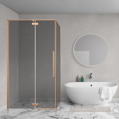 De combinatie van rookglas en geborsteld koper zorgt voor een tijdloze en verfijnde look die moeiteloos past in diverse badkamerstijlen. Het rookglas geeft een subtiele privacy zonder de ruimte te sluiten, terwijl de warme koperkleurige accenten een exclusieve sfeer creëren. Zo voeg je een uniek designelement toe dat direct in het oog springt. Deze zijwand is niet zomaar functioneel het is een statement van stijl en klasse in jouw badkamer.