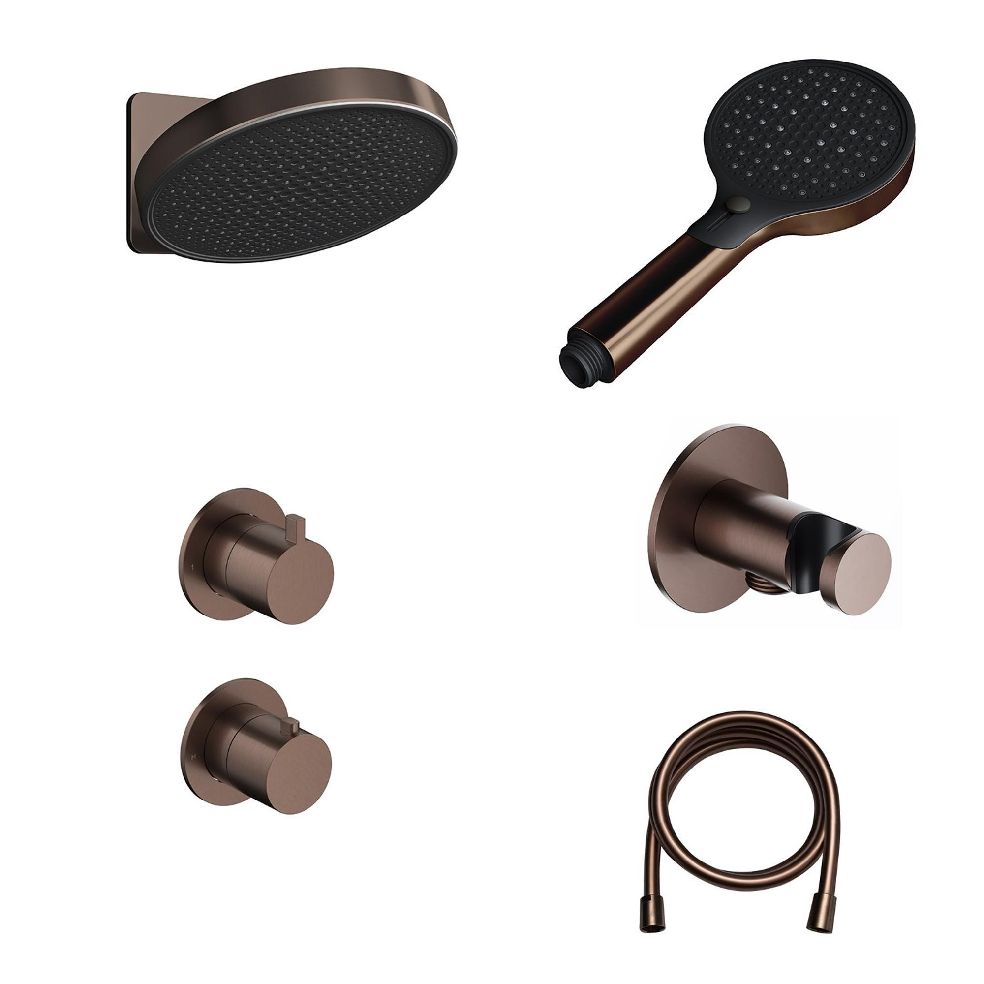 Hotbath ACE Regendoucheset - inbouwkraan - thermostatisch - 30cm hoofddouche - handdouche - geborsteld koper PVD