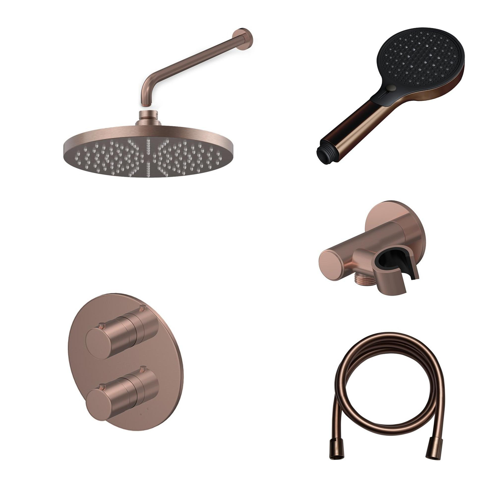 Hotbath COBBER Regendoucheset - inbouwkraan - thermostatisch - 20cm hoofddouche - handdouche - geborsteld koper PVD
