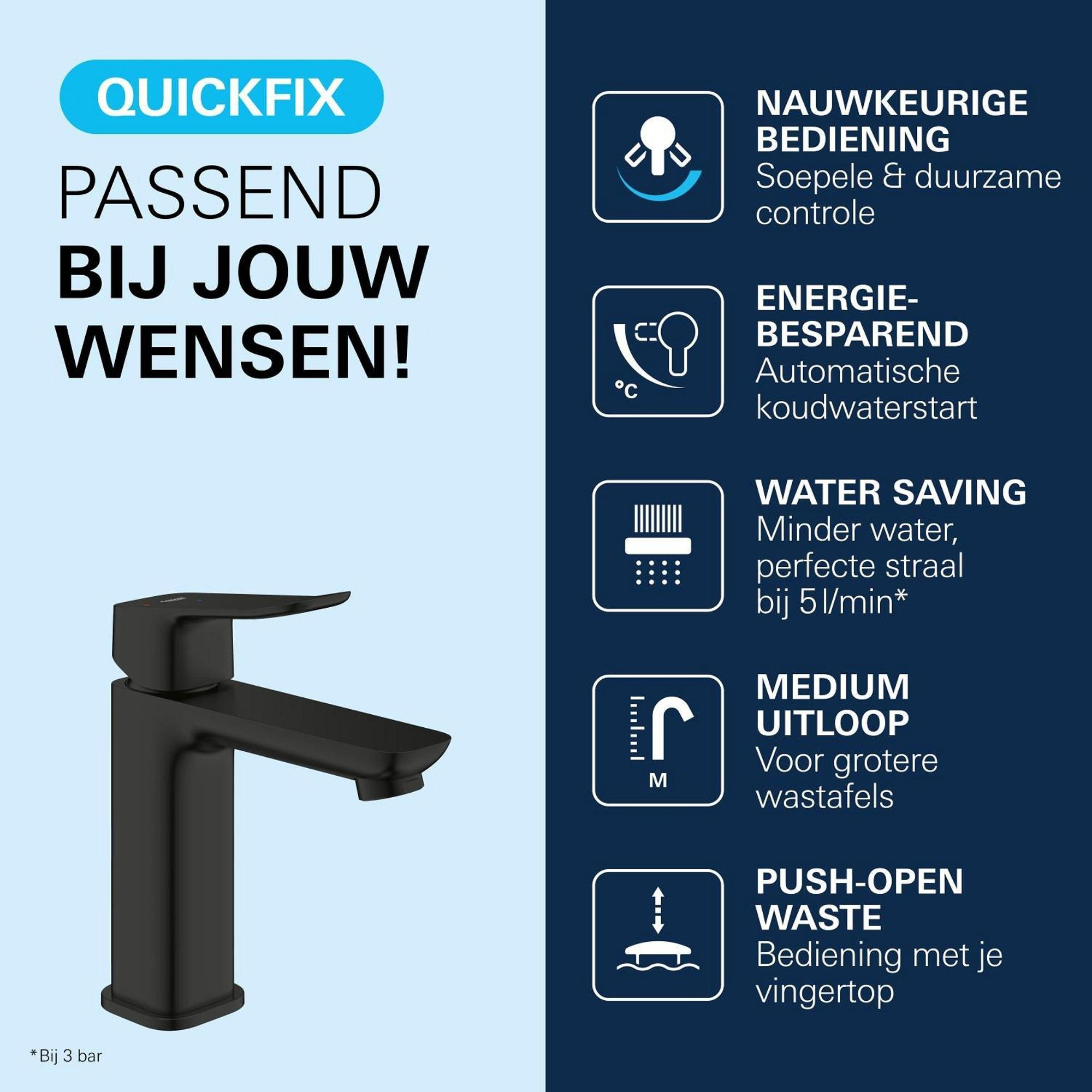 Grohe Dice Wastafelmengkraan - m-size - opbouw - koude start - klikwaste - mat zwart