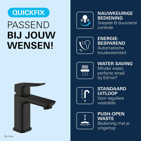 Grohe Dice Wastafelmengkraan - s-size - opbouw - koude start - klikwaste - mat zwart