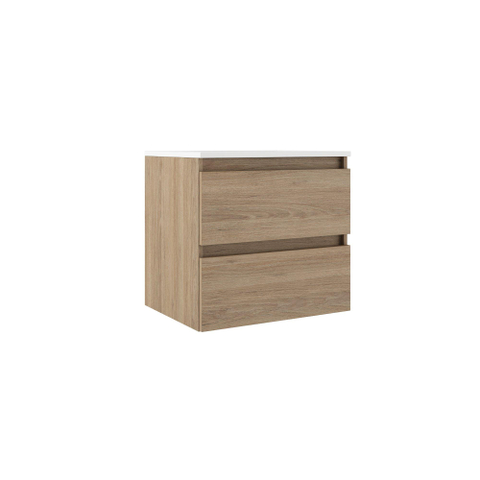 Saniclass Chacito Badkamermeubelset - 60x40x55cm - ondiep - 2 lades - greeploos - wastafel glans wit - 1 kraangat - eiken