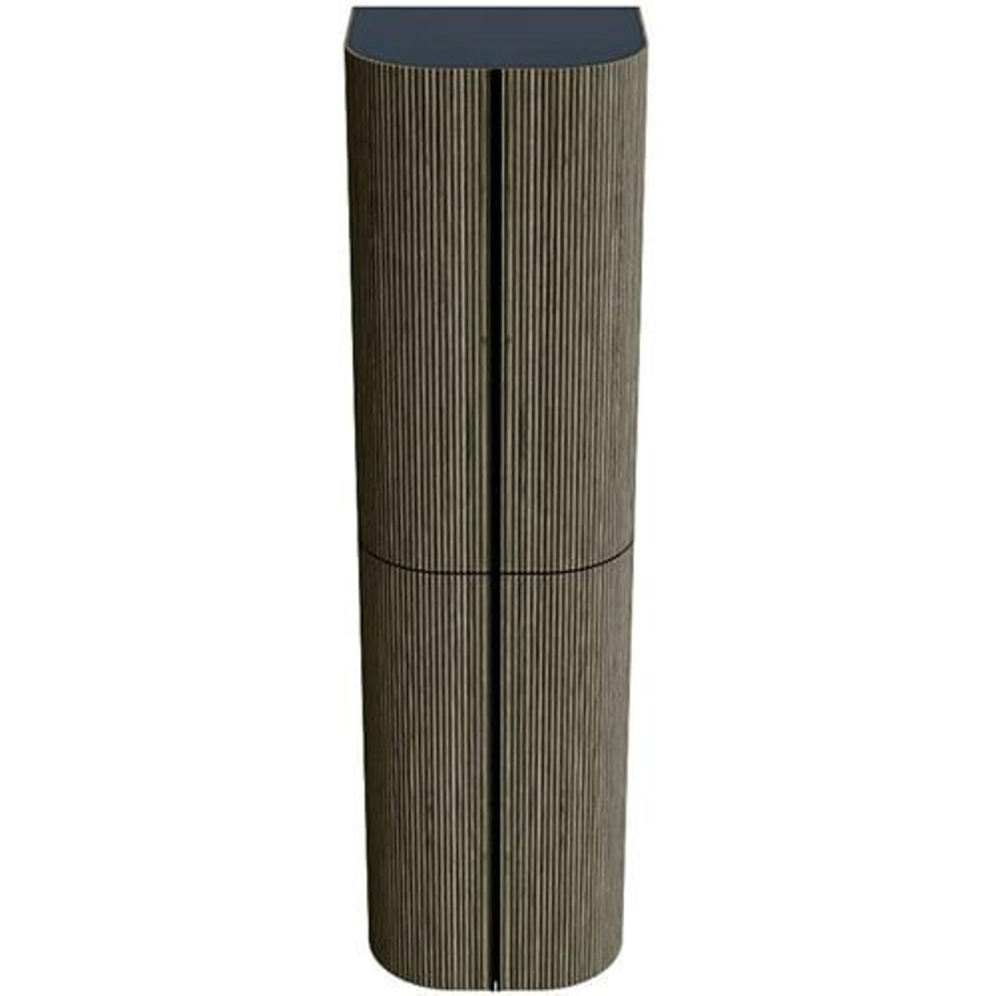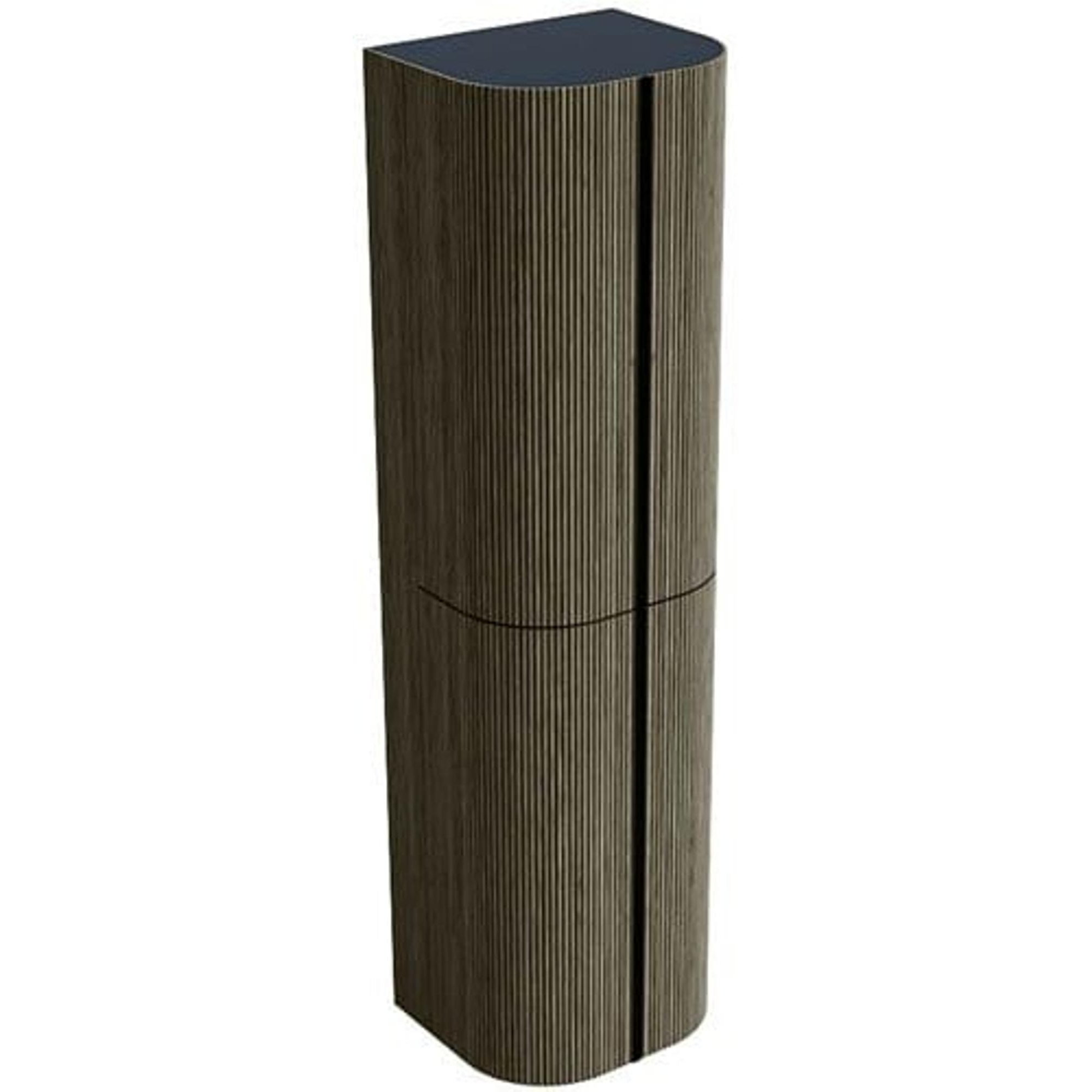 De KURVE kolomkast, verkrijgbaar in de afmeting 160x45cm of 80x45cm, is meer dan alleen een functioneel meubelstuk voor je badkamer. Met zijn keuze aan warme kleuren, Walnut of Oak, en zijn kenmerkende halfronde, verticale stroken van massief eiken, voegt de KURVE een vleugje verfijning en luxe toe aan de ruimte.Of je nu kiest voor de grotere maat van 160x45cm of de compactere versie van 80x45cm, deze kolomkast biedt voldoende opbergruimte zonder concessies te doen aan stijl. De elegante afwerking in massief eiken en fineer zorgt voor een tijdloze uitstraling die perfect past bij verschillende badkamerstijlen.