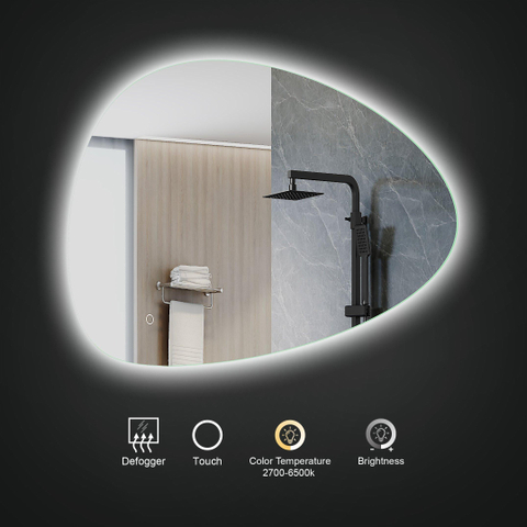 Stap binnen in een wereld waar elegantie en functionaliteit samenkomen. Deze spiegel transformeert jouw badkamer in een serene, stijlvolle ruimte waar je elke dag met plezier begint en eindigt. Dankzij het unieke, organische ontwerp voelt de spiegel natuurlijk en uitnodigend aan, terwijl de subtiele backlight LED-verlichting een warme, zachte gloed verspreidt. Dit zorgt niet alleen voor een aangename sfeer, maar ook voor optimale verlichting tijdens je dagelijkse verzorgingsrituelen. Het strakke, moderne design geeft jouw badkamer een frisse, luxe uitstraling en creëert een gevoel van ruimte en rust. Zo wordt jouw badkamer niet zomaar een plek, maar een persoonlijke oase waar comfort en stijl hand in hand gaan.