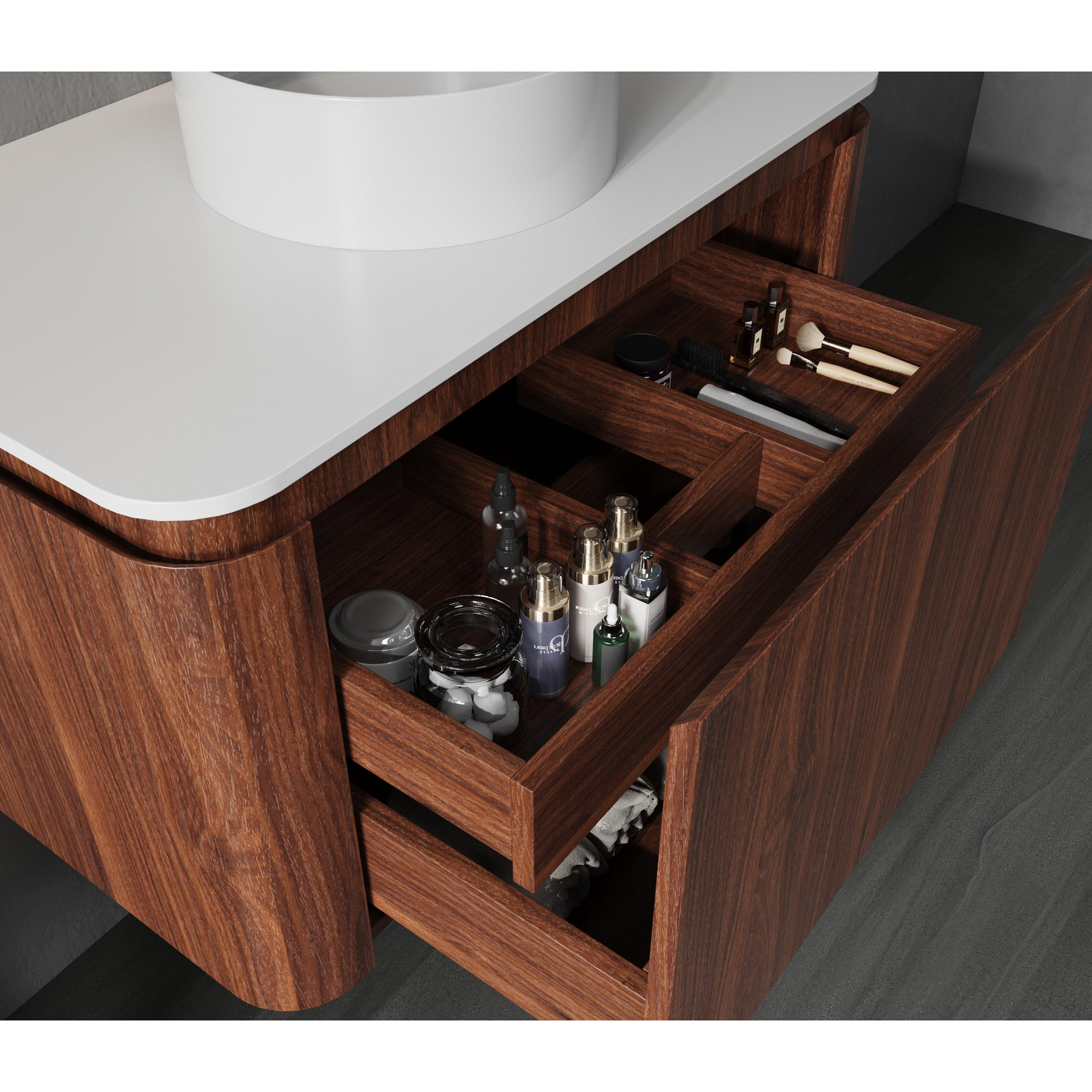 - Voorzien van 2 ruime lades met geïntegreerde grepen en softclose functie