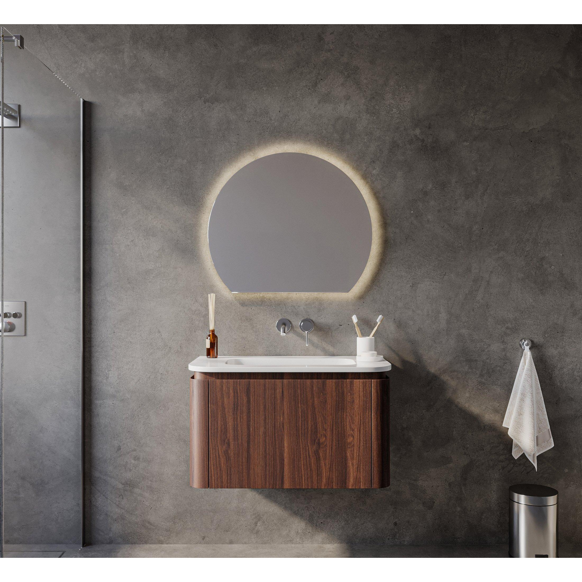 - Duurzame, vochtbestendige houtafwerking geschikt voor badkameromstandigheden
