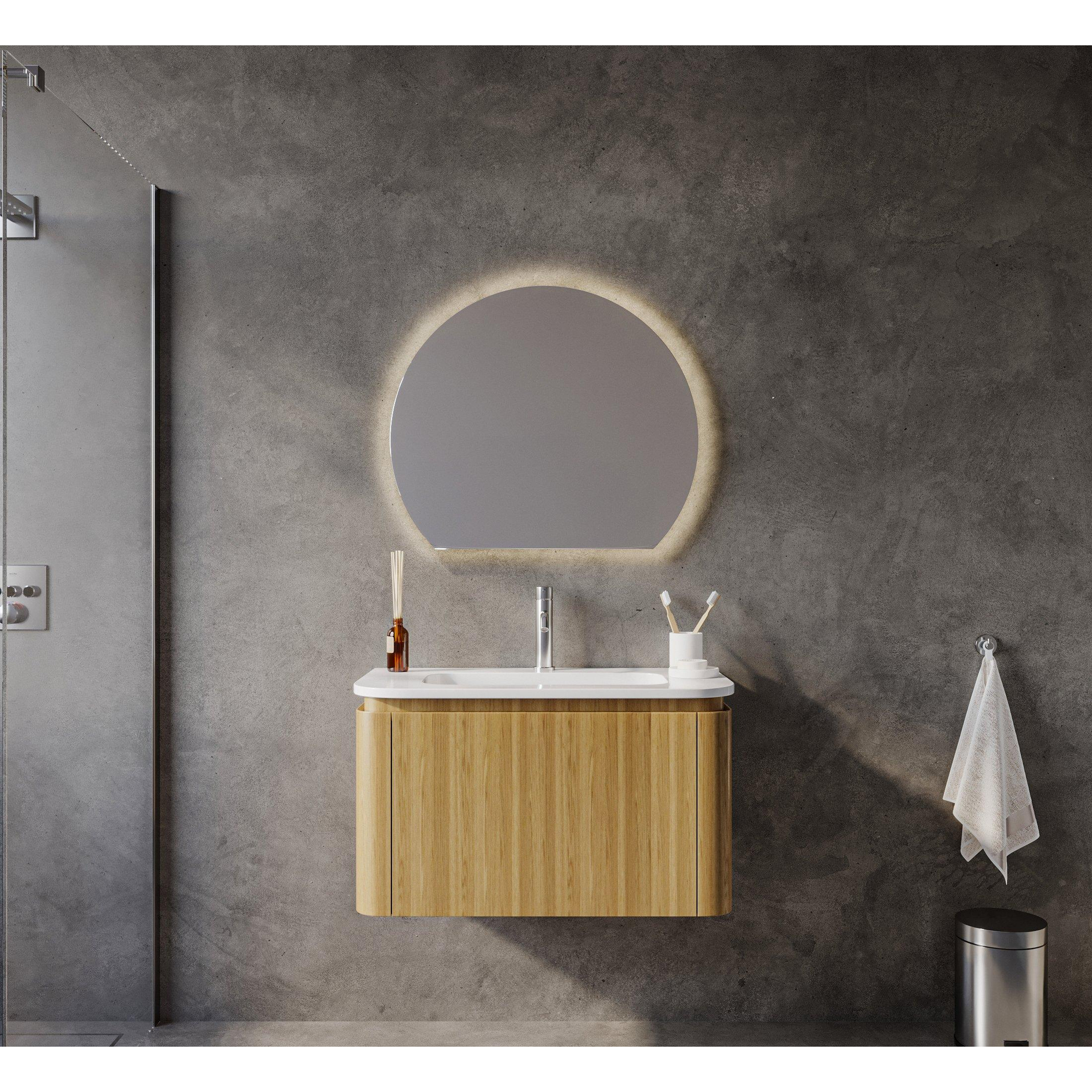 Saniclass Terra Badkamermeubelset - 80cm - 2 lades - afgeronde hoeken - 1 wastafel - met kraangat - sandwood (licht eiken)