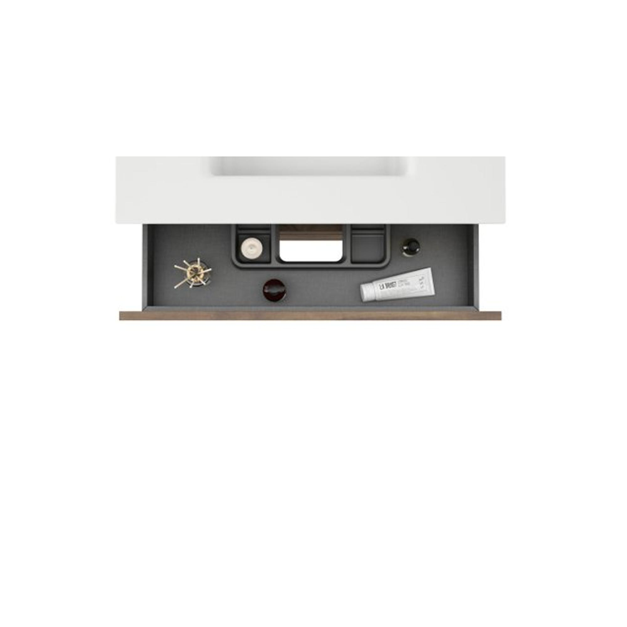 Deze set is uitgerust met twee ruime lades waarin je al je dagelijkse verzorgingsproducten overzichtelijk kwijt kunt: van handdoeken en föhn tot make-up en scheerspullen. Dankzij de logische indeling houd je je wastafelblad netjes en geordend, wat direct bijdraagt aan een rustige uitstraling in de badkamer. De softclose geleiders zorgen ervoor dat de lades zacht en geruisloos sluiten, ook als ze per ongeluk wat harder worden dichtgeduwd. Dat is niet alleen comfortabel, maar ook beter voor de levensduur van het meubel. De greeploze fronten zorgen voor een strak, modern lijnenspel zonder uitstekende grepen waar je langs kunt blijven haken. Bovendien maak je de vlakke fronten eenvoudig schoon met een zachte doek, waardoor je badkamer in een handomdraai weer fris oogt.